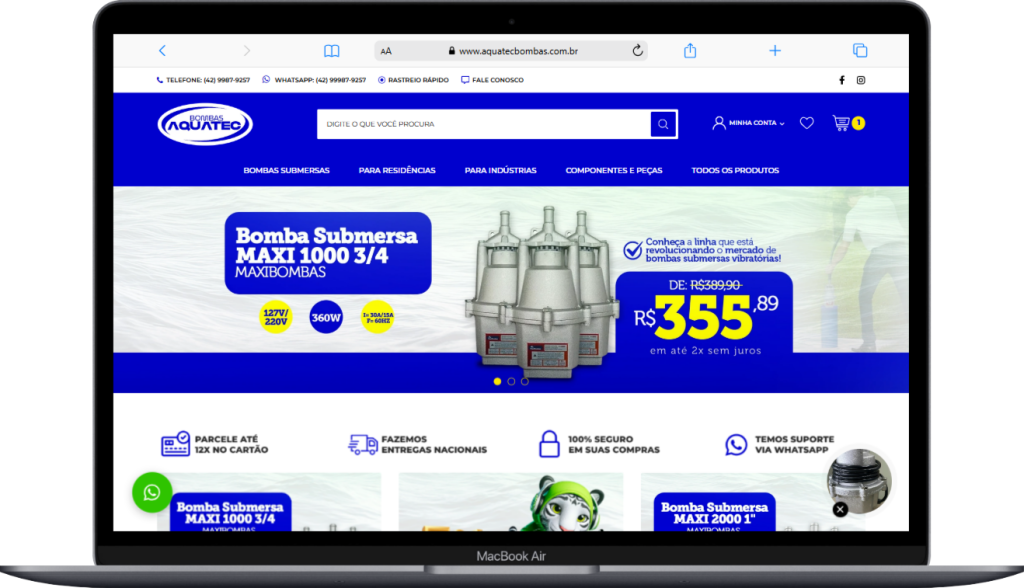 Construímos a loja com tecnologia segura, responsiva e fácil de navegar, integrando meios de pagamento e ferramentas necessárias.